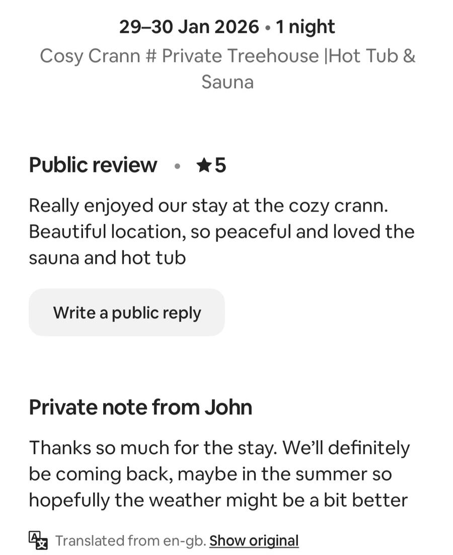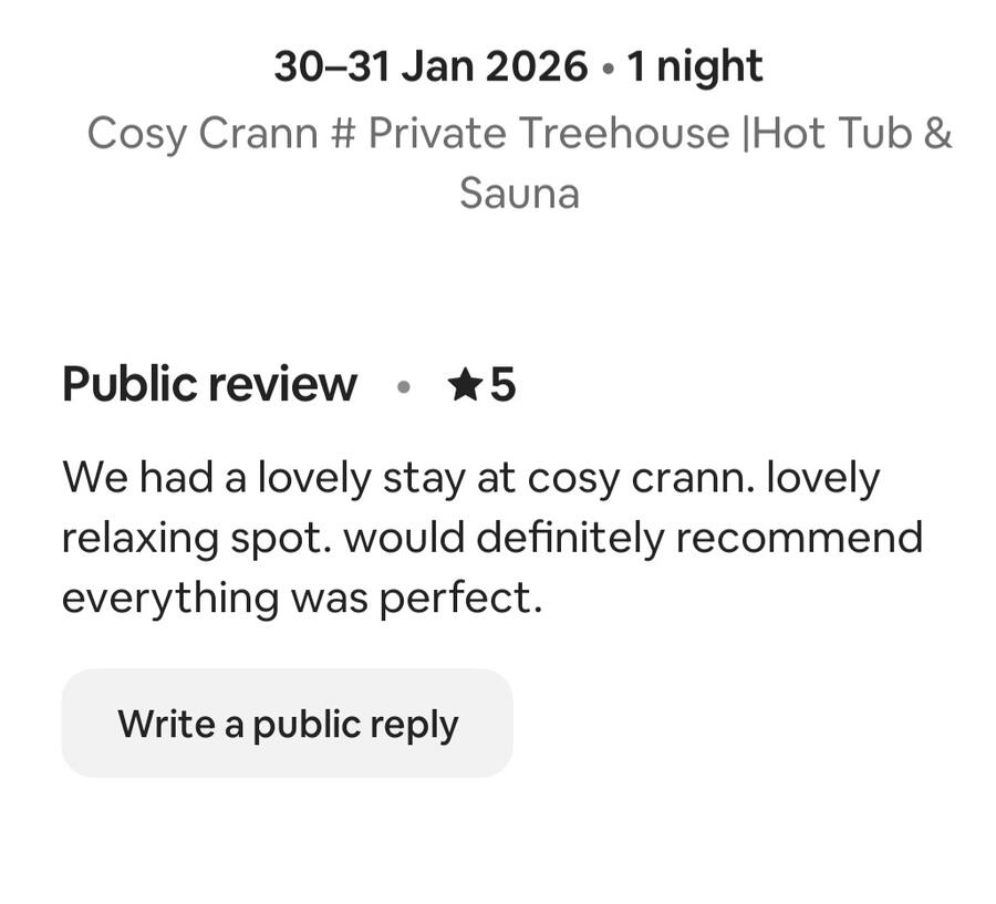 Over 340 five-star reviews from guests who’ve experienced Cosy Crann. Check them out for yourself.