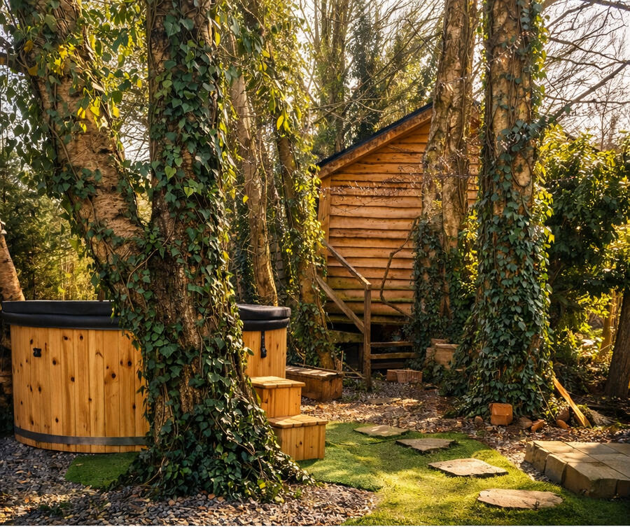 • Private hot tub under the trees